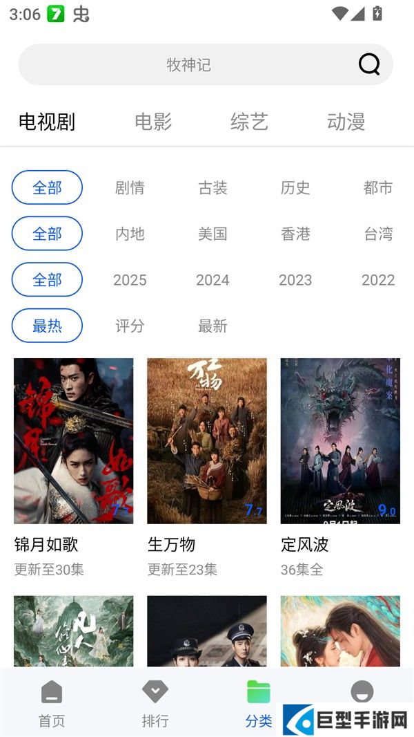 3、然后我们还可以通过分类功能来寻找到内地、美国、香港、台湾等多个地区的影视资源。