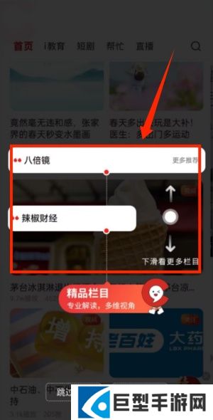 2、通过上下滑动操作,能够浏览更多栏目与板块。