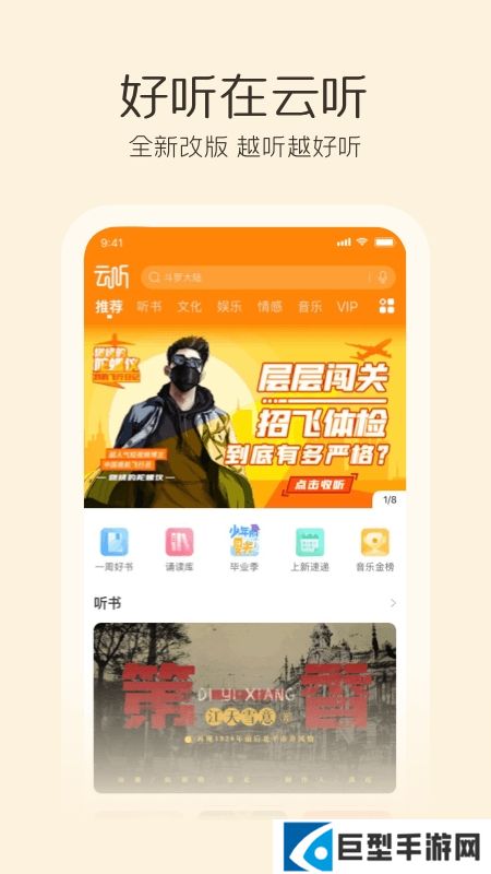 “听精品”重点包含有声阅读、知识付费、头部IP等内容;