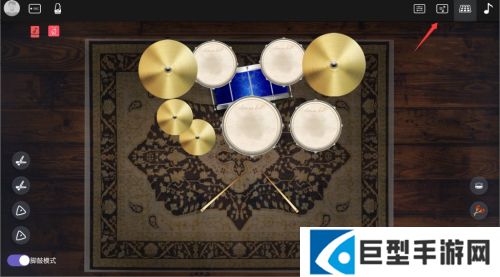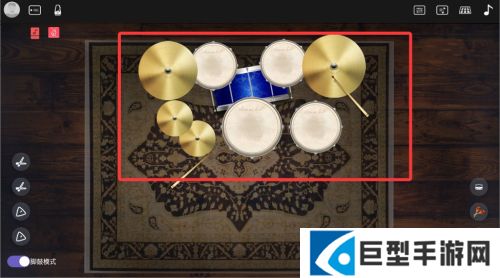 2、进入程序首页即可看到虚拟爵士鼓界面,通过触控不同区域可演奏相应打击乐音效。