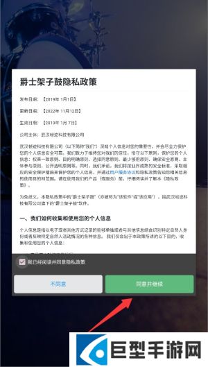 爵士架子鼓手机版使用教程1、首次启动应用时,系统会显示用户协议和隐私政策,阅读后点击同意按钮进入主界面。