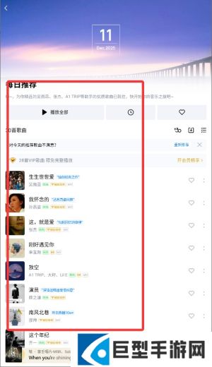 3、在每日推荐列表中,选择您感兴趣的单曲或歌单,点击其封面或标题进入。