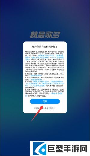 酷狗音乐下载免费听使用教程1、首次启动应用时,系统会显示用户协议和隐私政策,阅读后点击同意按钮进入主界面。