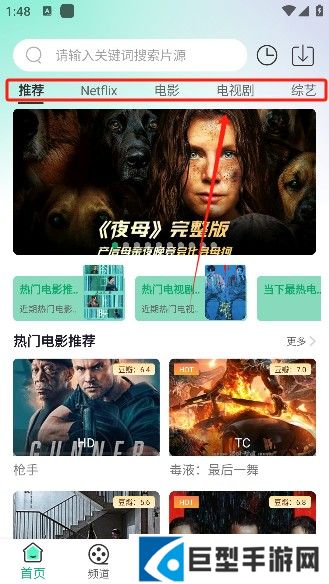 2、点击顶部的类型可以快速切换内容