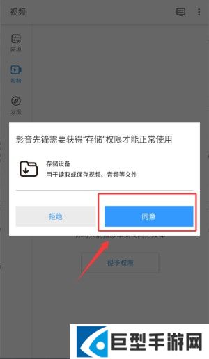 1、启动影音先锋,于权限申请页点击“同意”授权使用。