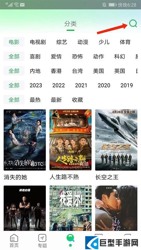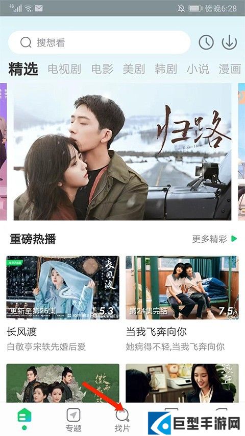 2、进入找片界面,选择右上角【放大镜】图标即可开始搜索;