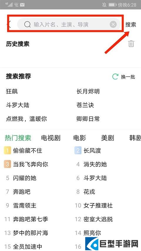 3、进入搜索界面,在输入框输入要搜索的片名、主演、导演后,点击【搜索】选项;