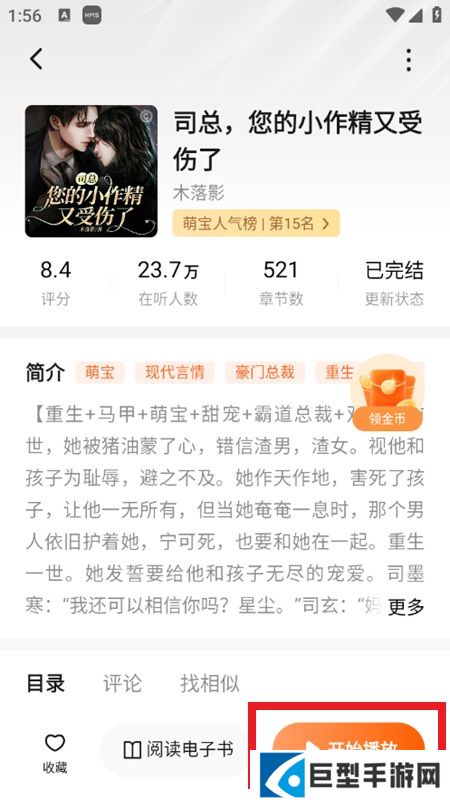 2、在小说的详情界面,点击“开始播放”。