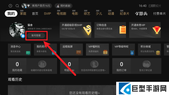 2、在个人中心页面,向下调整功能键,然后选择“账号管理”