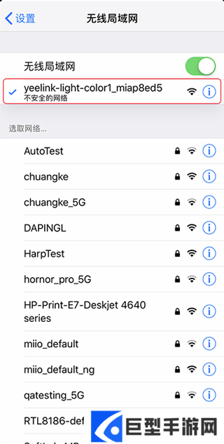 5、根据屏幕指令在无线网络列表中选择对应的Wi-Fi 网络后返回至Yeelight App,等待连接成功即可