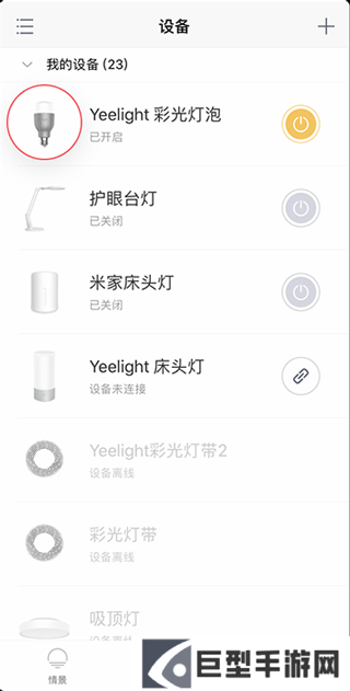 6、彩光灯泡已添加至设备-我的设备,现在你可以通过Yeelight App对彩光灯泡进行自由调节了!快来试试吧!
