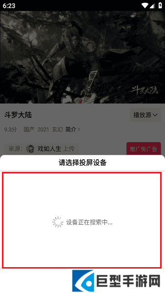 4、最后,系统会提示“正在搜索设备”,找到设备后,点击即可投屏成功。
