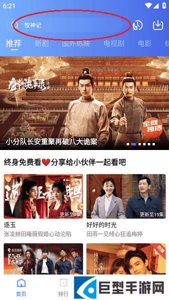 1、打开大地视频app后,搜索要看的影视剧,如图所示;