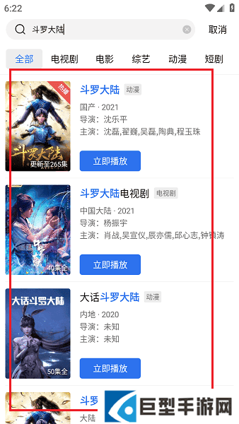2、比如小编搜索的斗罗大陆,就会出现相关的作品;