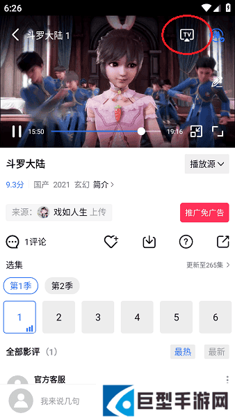 3、选择要观看的视频,进入播放页面后,点击右上角的“TV”按钮;