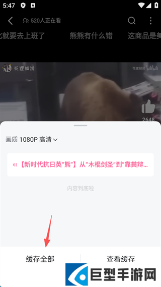 6、随后点击屏幕左下角的“缓存全部”。