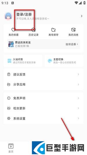 1、打开软件,点击右下角我的,再点击上方登录/注册
