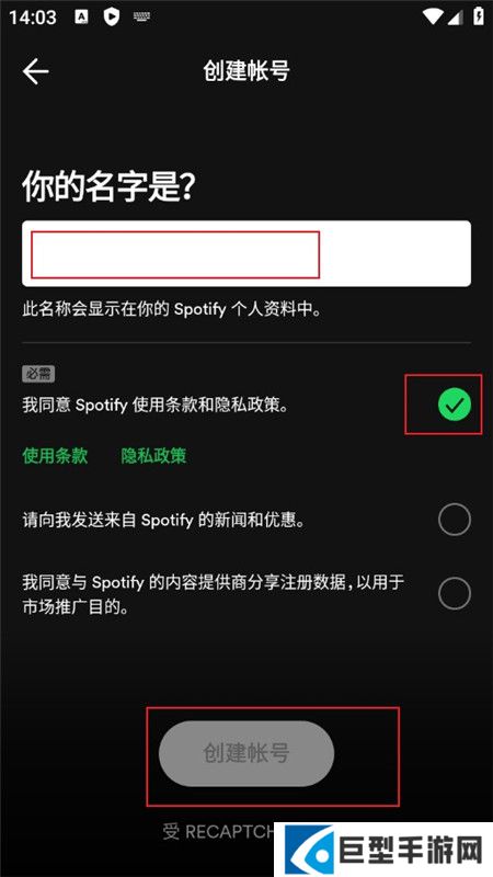5. 同意服务条款和隐私政策。请务必阅读并理解这些文档,然后勾选同意框。