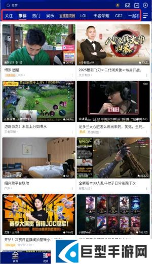 2、在首页浏览各类直播分区,根据兴趣选择游戏、娱乐等直播类型。