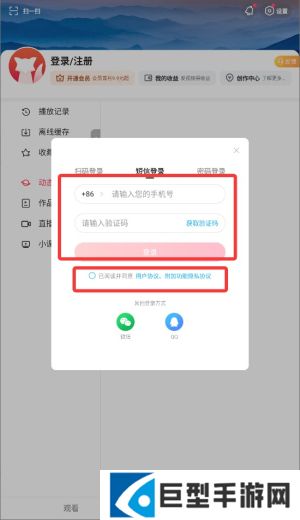 3、在登录界面选择"短信验证登录"选项,进入手机验证流程。