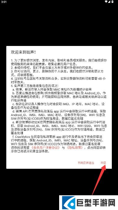 街声怎么使用1、打开应用后仔细阅读用户协议和隐私政策,确认后点击同意按钮进入应用。