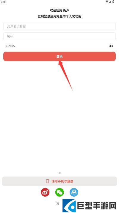 2、在登录页面输入已注册的用户名或电子邮箱及对应密码,完成验证后进入应用。