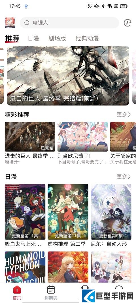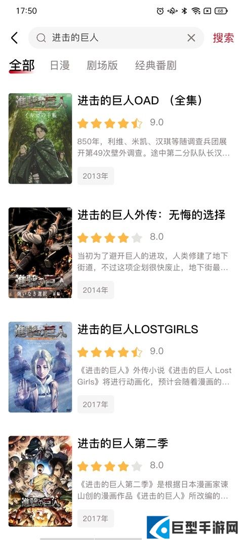 2、点击搜索栏我们可以直接搜索相应的动漫,如进击的巨人;