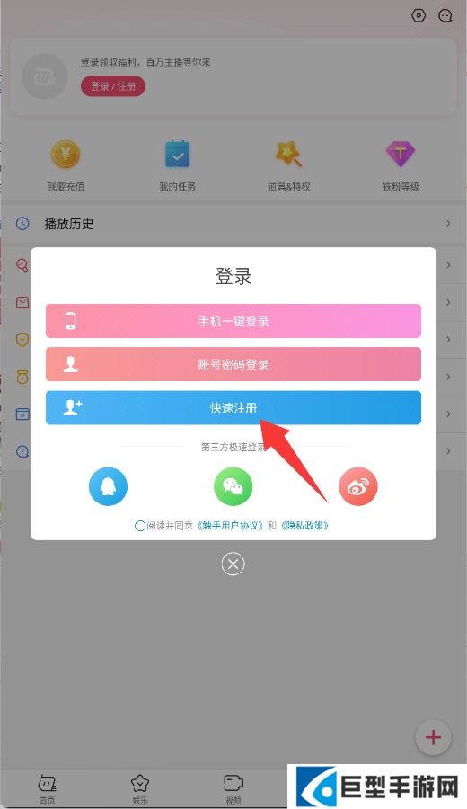 4、点击“快速注册”按钮,通过短信验证码完成账户创建即可开始使用直播功能。