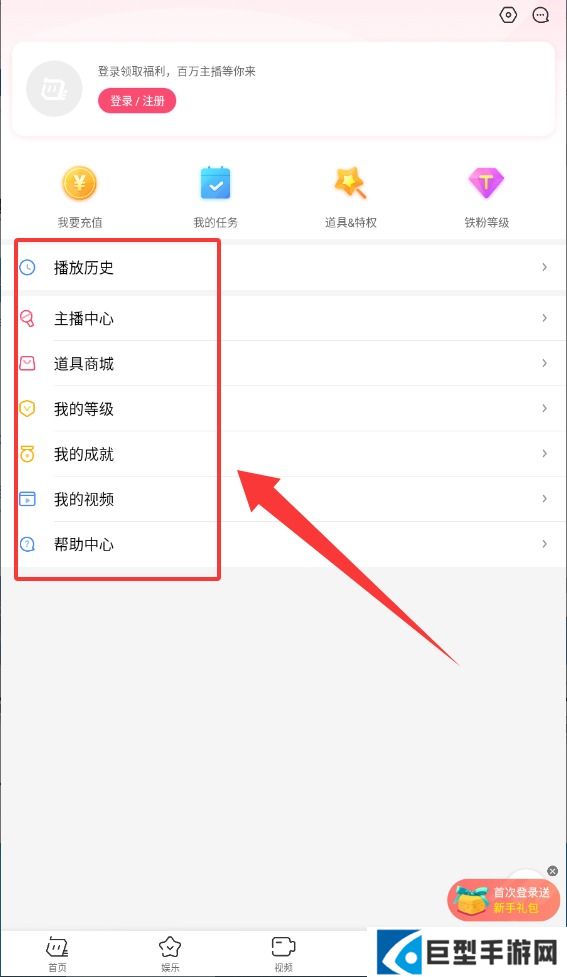 3、底部导航栏设有娱乐直播与视频发现板块,分类展示各类直播内容。