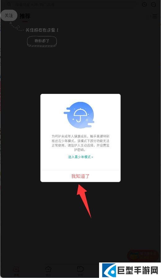 2、认真了解青少年模式功能说明后,返回主界面点击右下角“我的”进入个人中心。