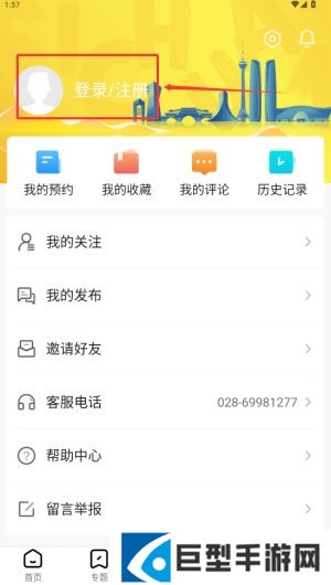 3、在个人中心页面中,点击登录或注册功能按钮。