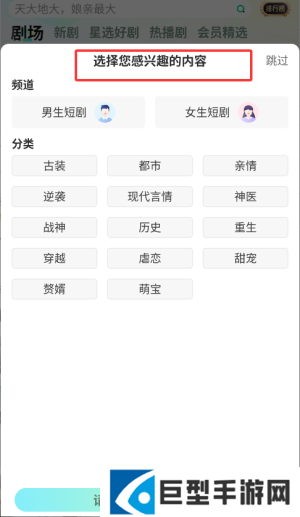 2、根据个人偏好选择感兴趣的短剧类型,系统将推送相关题材内容。