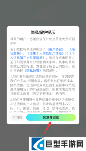 星芽免费短剧最新版怎么看短剧1、首次启动应用时,系统会显示用户协议和隐私政策,阅读后点击同意按钮进入主界面。