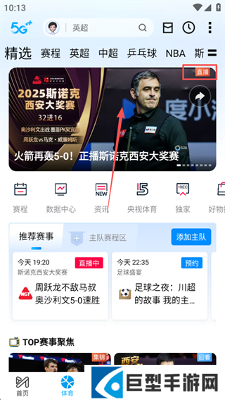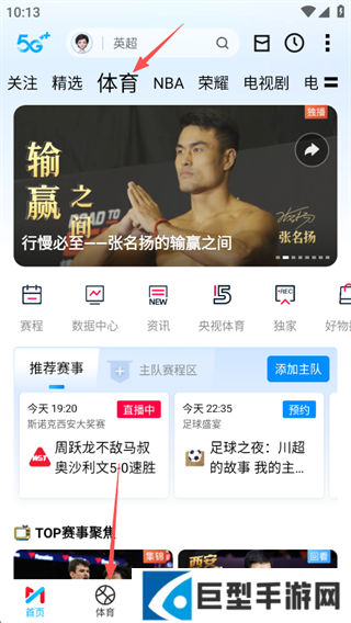 2、在首页顶部导航栏中选择体育分类专区,即可进入专门的体育赛事内容聚合页面。