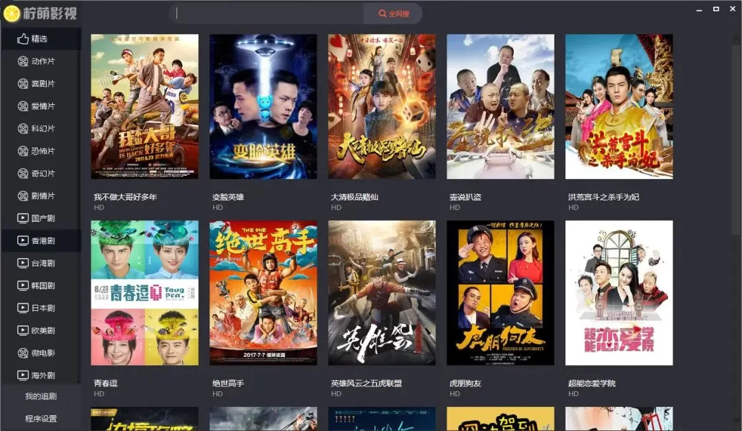 打开柠檬追剧,首页是官方精选的一些电视剧或者电影,最上面可以搜索资源,在左侧有一排各种视频的分类。