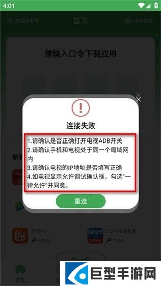 设置好了以后,再次点击“未连接电视”,输入你的电视IP地址,点击“连接电视”;
