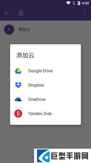6、点击云,点击添加云,找到你有用的云盘,登录账号即可在主页看到云盘内的内容。