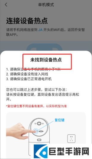 4、若未能发现设备热点,需手动点击复位键重新激活设备连接模式。
