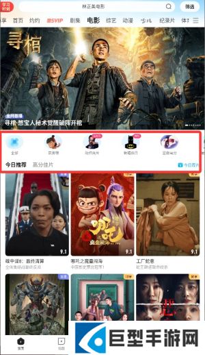 2、在主页面选择"电影"功能入口,浏览各类影片的详细分类列表。