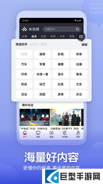 软件点评在央视频不仅能看到权威的时事内容,还可以看到“泛文体、泛资讯、泛知识”多元化的精彩视频;不仅有轻松好玩的文娱、动漫、影视等内容,还有知名主播、记者、编导等总台“名人”为央视频创作的独家视频;不仅聚合了《动物世界》《天下足球》《航拍中国》《舌尖》等数不胜数的新老热播节目,也汇聚了央视及各地方卫视三十余个频道的电视节目直播,更有丰富的赛事和热点事件的实况报道。