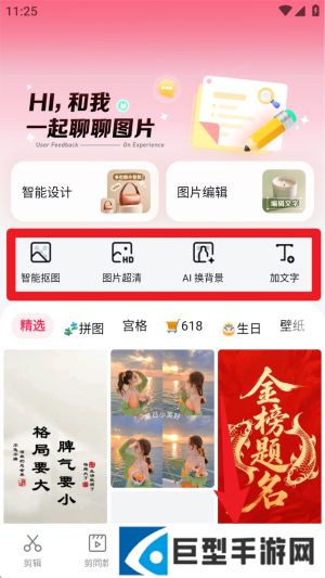 4. 前往“图片设计”区可使用智能抠图、超清修复、AI换背景等功能,自由处理图片素材。