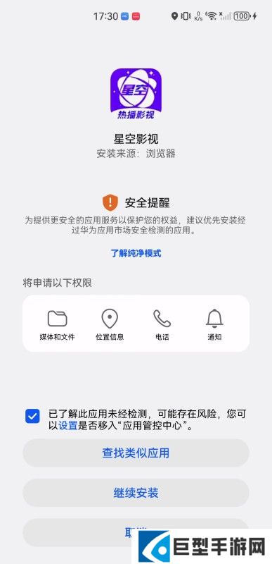 3、第三步,点击勾选“已了解此应用未经检测……”,然后再点击“继续安装”。(出现安全提醒,不用惊慌)
