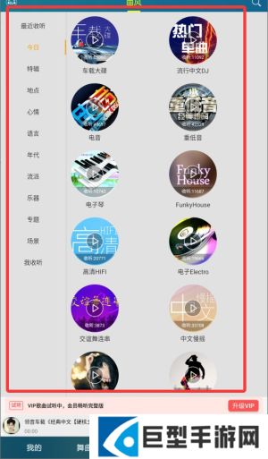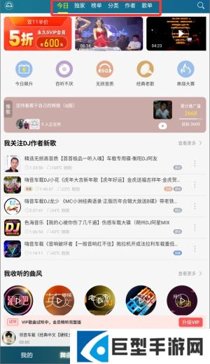 2、进入主界面后选择"音乐分类"栏目,浏览不同风格的混音作品集。