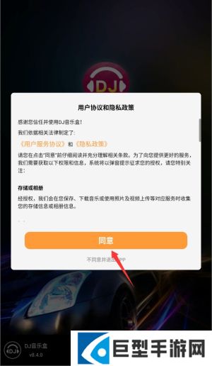 dj音乐盒手机版使用教程1、首次启动应用时,系统会显示用户协议和隐私政策,阅读后点击同意按钮进入主界面。