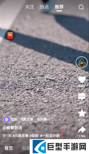 2、登录成功后默认进入首页推荐页,滑动屏幕可浏览系统推荐的热门短视频内容。