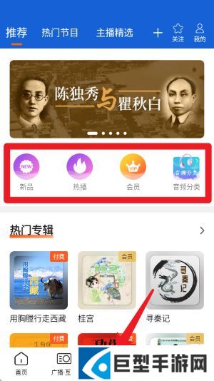 3、在“享听”界面中,可按新品、热播、会员及音频分类筛选内容,方便快速找到想听的节目。