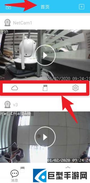 2、在“首页”界面中,可以看到已连接的摄像头列表,并可点击云存储、本地存储、设置图标来管理录像与设备配置。