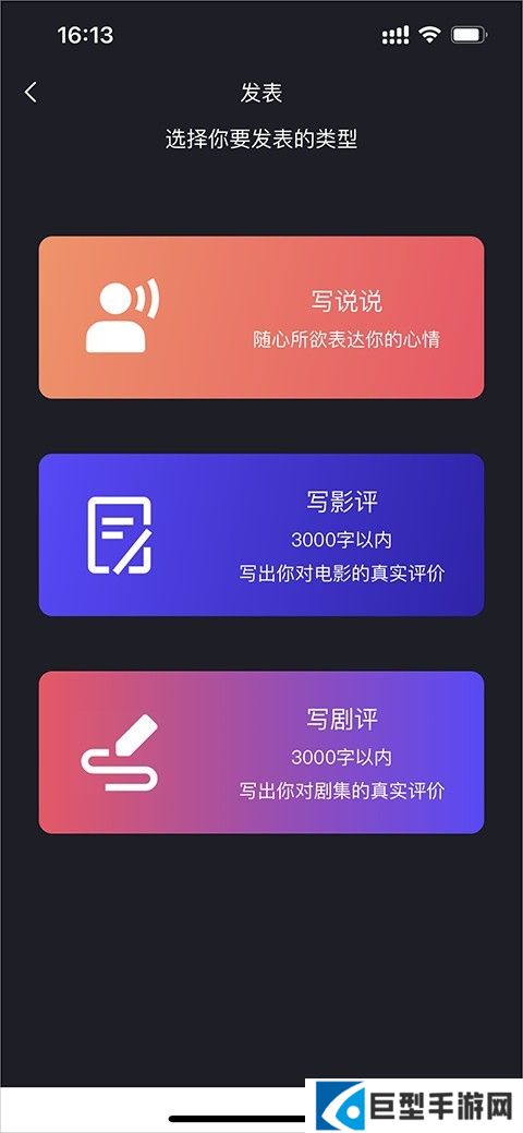 2、选择自己想要发表的类型,这边以写影评为例吧。