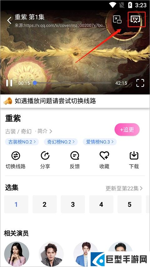 3、之后进入播放页面,点击右上角的【TV】图标。