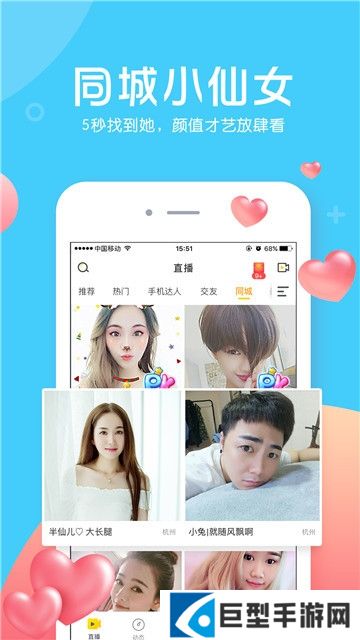 软件特色1、新人鼓励:全新排序,榜单清零,上首页不再需要爸爸是李刚;2、时尚简约:简约不简单,直播体验绝美极致,时尚时尚最时尚;3、颜值盛宴:高颜值主播精彩不间断,外貌协会会长钦点直播APP。4、高清美颜:画面更清晰,效果更自然,你不说谁知道你用了美颜;5、智能推荐:传说中甜蜜的不期而遇,你只需要这套独一无二的算法;